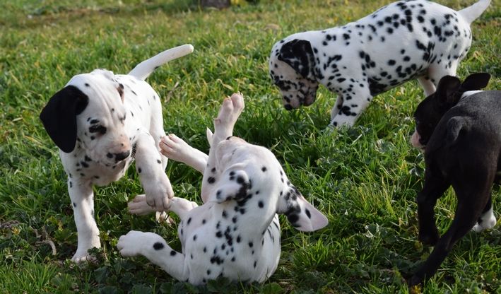 Ils évoluent au sein d'une petite meute structurée avec leur mère et d’autres adultes et maîtrisent parfaitement les codes canins.